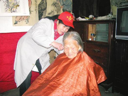 1月12日,朱莊礦南湖社區的志愿者們再次來到汪海茫家。話不多說,大家相當默契地分了工:有的打掃衛生,有的收拾被褥。為附近居民義務剪發已有30年的志愿者章雪帶著工具上門服務,為汪范氏剪起了頭發。平素很安靜的汪海茫家,頓時熱鬧起來。