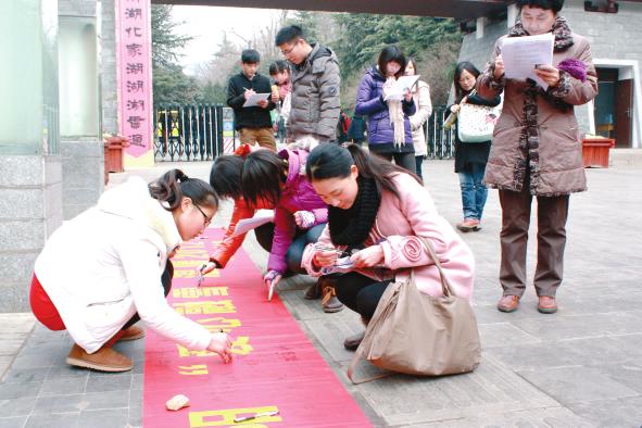 1月15日上午,“愛心融雪.溫暖2012”關愛老年人簽名活動在相山公園入口廣場舉辦,來往游人紛紛響應,簽下自己對老人的新年祝福話語。