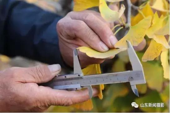 禚寶洋在測量銀杏生長量。
