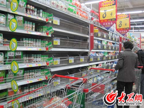 時間:3月17日10:00 地點:濟南大潤發超市 情況:倉庫貨架全空