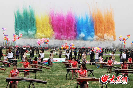 17日上午,第七屆世界風箏錦標賽暨萬人風箏放飛表演,在濰坊市浮煙山國際風箏放飛場開賽。來自25個國家和地區的頂尖風箏高手匯集一堂,各顯神通,千鳶競技,天空一片斑斕。