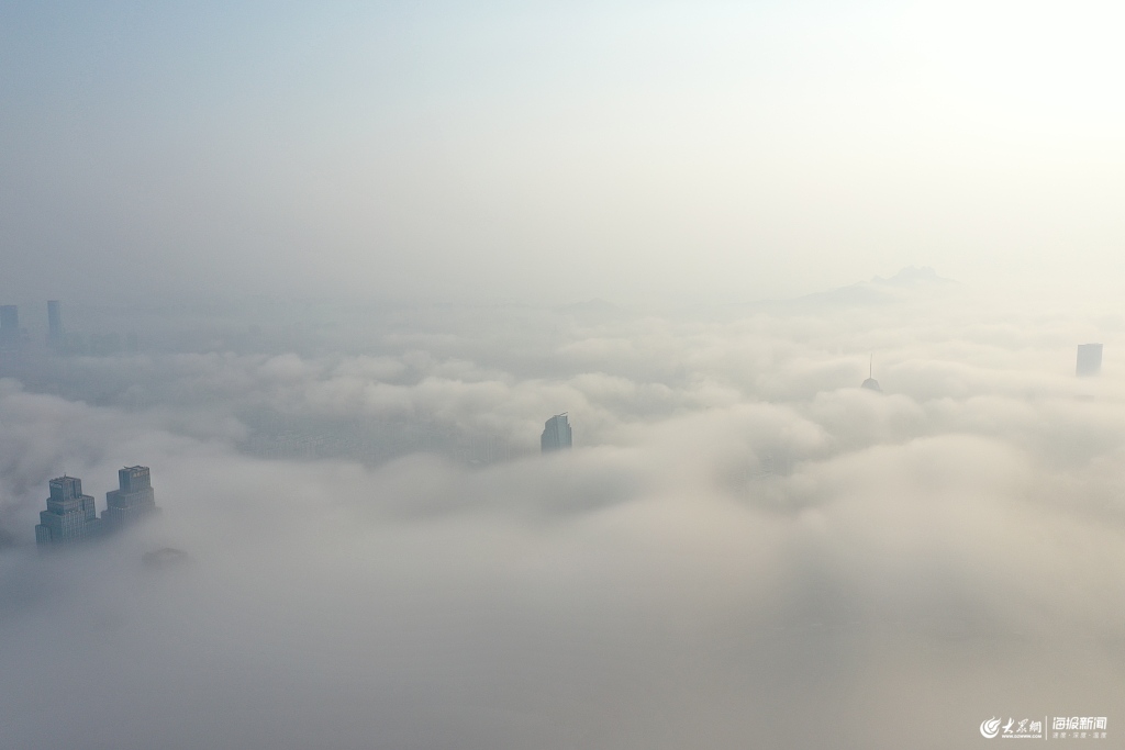 2019年7月4日,青島市區東部沿海一帶出現平流霧奇觀,海天中心主塔樓、奧帆中心、五四廣場等周邊以及附近的高樓大廈藏身云霧之中,十分壯觀。