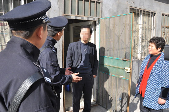 甸柳新村派出所民警現(xiàn)場調(diào)解擾民事件(高明興 攝影)