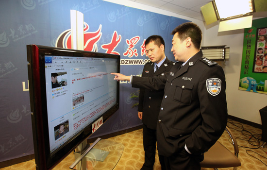 16日上午,濟南市公安局槐蔭分局大金莊派出所所長陳劍和槐蔭公安分局宣傳科科長袁瑋瀏覽網友提問。