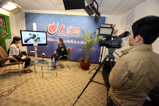 濟(jì)南市公安局歷下區(qū)分局科院路派出所所長肖文兵做客“所長在線”與網(wǎng)友互動(dòng)交流。(曹亮 攝)