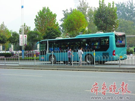 繼濼源大街銀座橋附近護(hù)欄加高后,近日,在經(jīng)十路泉城公園北門,四段隔離護(hù)欄也被“試驗(yàn)性”加高。不過,與銀座橋附近護(hù)欄“補(bǔ)高”不同,經(jīng)十路上出現(xiàn)的護(hù)欄加高,是拆舊護(hù)欄換新高度的護(hù)欄,可謂“整體增高”。 記者 趙恩霆 攝