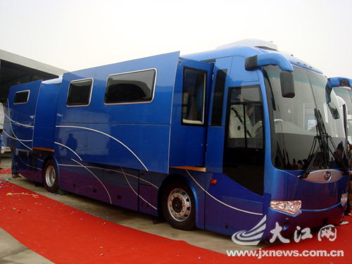 3月8日,中國第一輛擁有自主知識產(chǎn)權(quán)的豪華房車在江西南昌順利下線。江西自主生產(chǎn)的高檔房車的出現(xiàn),標(biāo)志著江西省客車生產(chǎn)技術(shù)步入了國內(nèi)領(lǐng)先水平。(圖片來自:江南都市報(bào) 宋光亞 攝)