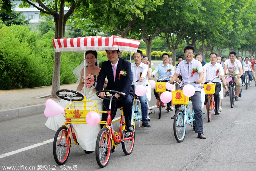 2014年7月2日,是位于青島開發(fā)區(qū)的中國石油大學(華東)在讀博士王光增與碩士畢業(yè)生陳東樂結婚的大喜日子。王光增在附近唐島灣公園租賃了幾輛自行車充當婚車迎娶了新娘陳東樂,婚禮上懸掛著他們本科畢業(yè)時的合影充當結婚照,他們在親朋和學弟學妹的祝福聲中完成了結婚大典。王光增來自山東棗莊,家境貧寒,自高中起就靠自己勤工儉學完成學業(yè),直至讀到博二。陳東樂在與王光增相識后,也靠自己勤工儉學完成大學學業(yè)。商量結婚時,王光增和陳東樂一致同意用最節(jié)儉的方式完成婚禮,學弟、學妹知道他們的情況后,自發(fā)給他們當伴郎和伴娘,為他們熱熱鬧鬧的操辦了婚禮。