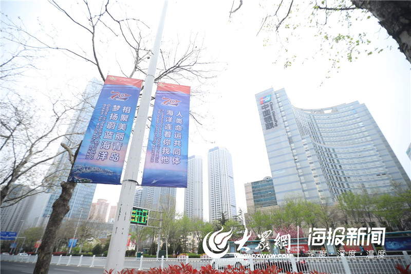 大眾網·海報新聞青島4月21日訊(特派記者 亓翔 劉琛 樊思思)2019年4月22日至25日,慶祝人民海軍成立70周年多國海軍活動將在青島及附近海空域舉行。4月21日下午,大眾網·海報新聞記者在青島市區看到,“和諧海洋 和平世界”“熱烈歡迎各國海軍代表團”“人民海軍向前進 勝利航程黨指引”等慶祝海軍70華誕的相關標語隨處可見。不少市民走上街頭,觀看與海軍節相關的慶祝活動,慶祝青島進入“海軍時間”。