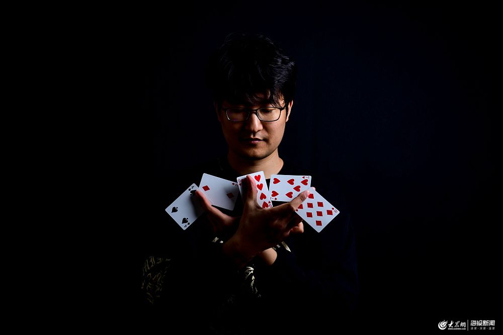 2019年4月17日,山東省青島市,張丞潤目前研究生在讀,即將前往澳大利亞攻讀博士,是一位不折不扣的“學霸”。除了“學霸”的身份,他還是一位魔術師,自學魔術10年,擅長花式紙牌,大學的時候就拿下了全國魔術精英挑戰賽金獎。張丞潤希望有朝一日能拍一部中國版的《驚天魔盜團》,并在影片中融入中國元素,讓中國魔術走向世界。