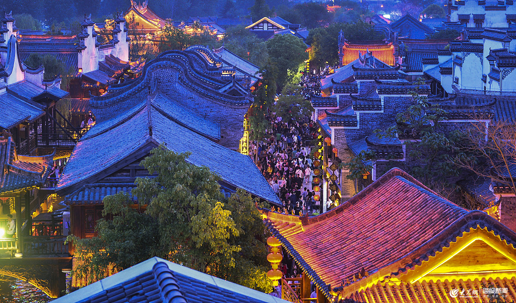 2019年5月2日,山東棗莊,入夜的臺兒莊古城景區游人如織。