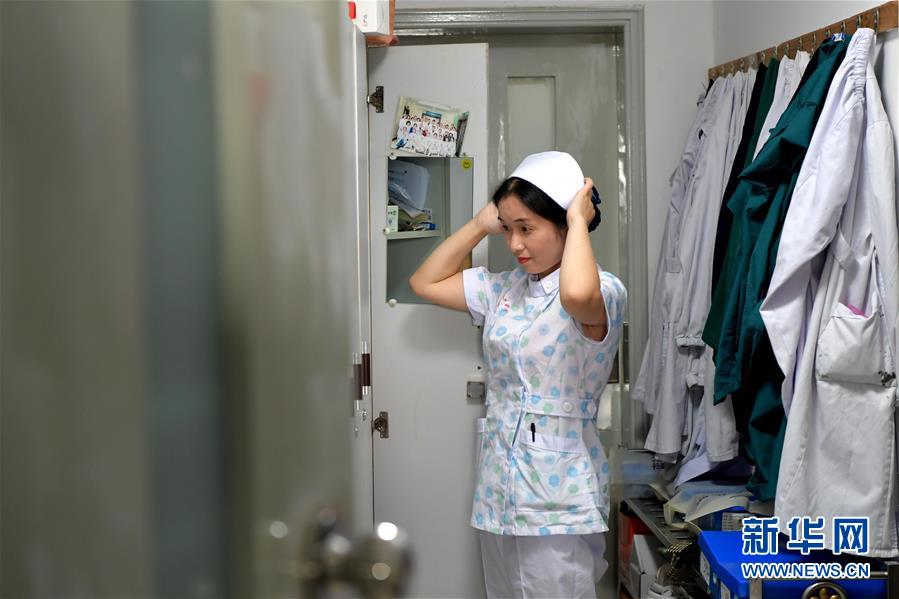 在江西省人民醫(yī)院兒科,高麗萍換上工作服準(zhǔn)備進(jìn)入新生兒監(jiān)護(hù)室工作(5月11日攝)。