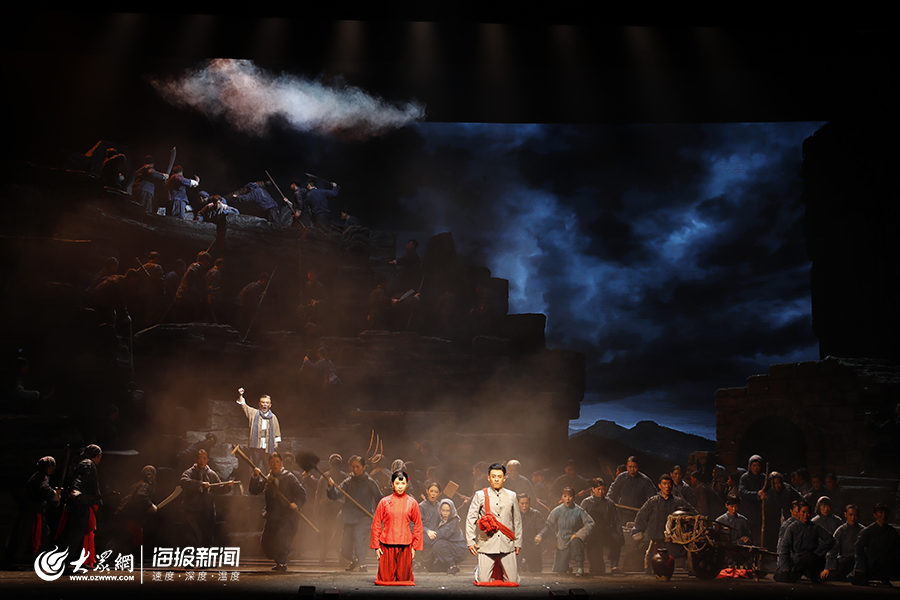 大眾網·海報新聞濟南5月19日訊(記者 張珈瑋 李立紅)5月16-19日,大型民族歌劇《沂蒙山》在山東劇院再次震撼上演。該劇講述了抗日根據地軍民同甘共苦、生死相依的動人故事,揭示了“軍民水乳交融、生死與共鑄就的沂蒙精神”深刻內涵。
