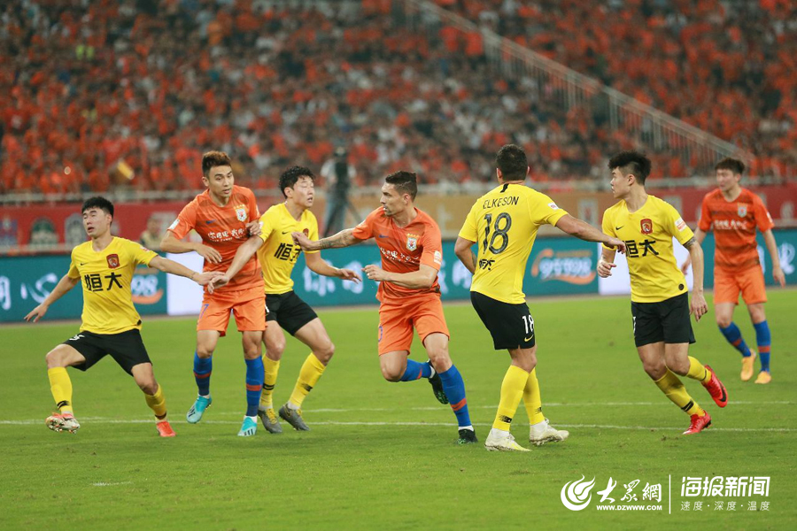 大眾網(wǎng)·海報(bào)新聞濟(jì)南8月3日訊(記者 亓翔)今晚7點(diǎn)35,山東魯能在主場迎戰(zhàn)廣州恒大。下半場韋世豪、埃爾克森3分鐘內(nèi)連進(jìn)兩球,第88分鐘保利尼奧抽射鎖定勝局。山東魯能最終在主場0:3不敵廣州恒大。埃爾克森在本場比賽中打入了加盟中超之后的第102粒進(jìn)球,至此與武磊并列在中超歷史射手榜頭名。