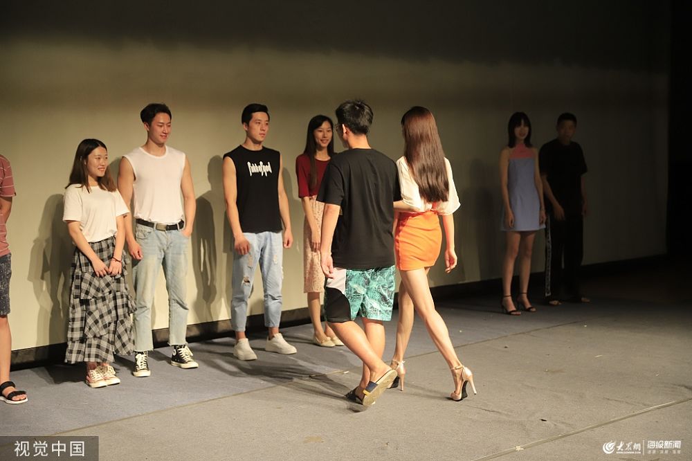 2019年8月6日,濟南,在山東政法學院禮堂內,一考研培訓班請來模特走臺來緩解考研族的學習壓力。據了解,課間10分鐘,該培訓機構為了緩解學生的壓力,特意請來模特與學生一同體驗舞臺走秀。