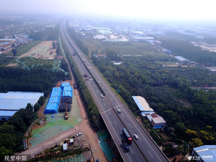 2019年9月6日,山東泰安,航拍即將停止通行進行改擴建的青蘭高速萊蕪至泰安段。這條繁忙的高速公路將于近幾日封閉施工,進行大規模擴建施工。