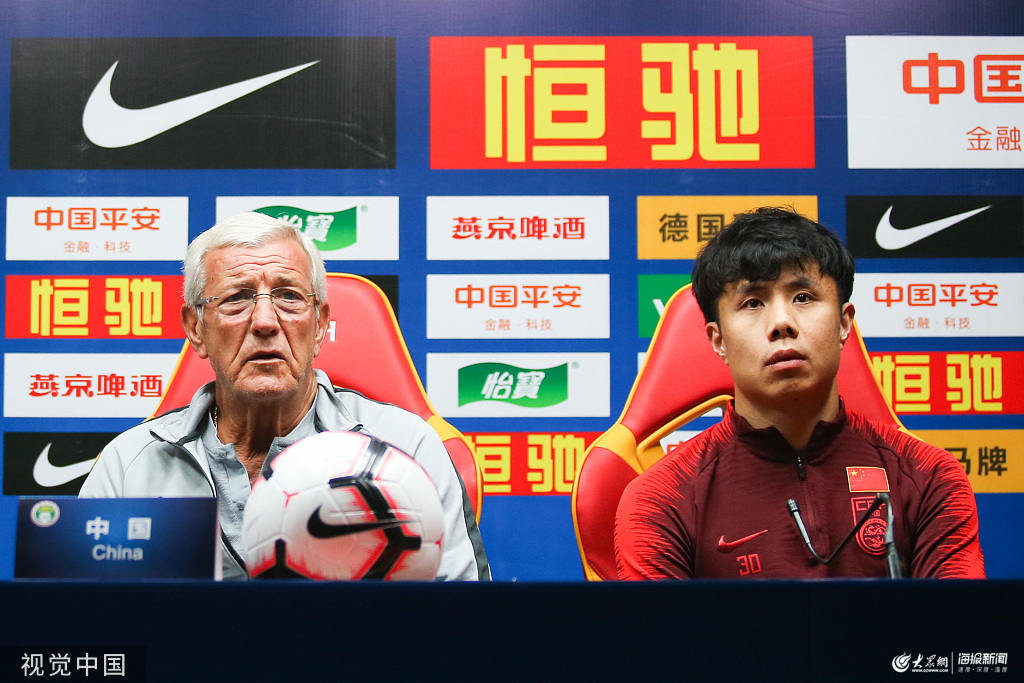 2019年10月9日,廣東廣州,2022世預賽40強賽前瞻,中國男足召開發布會。 里皮,蒿俊閔