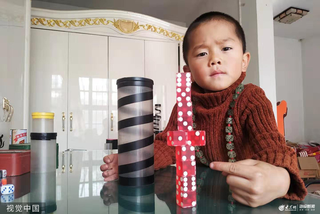 11月2日,來自山東濟寧的方圓告訴記者。方圓今年29歲,四年前接觸到搖骰子后,就對此產生了濃厚的興趣,自己在家練習,無師自通,達到了很熟練的境地,還參加過商演。去年,方圓發現小兒子家興對搖骰子很感興趣,放學后經常拿著骰子去搖,練得有模有樣,還多次“挑釁”父親直言要超越他。