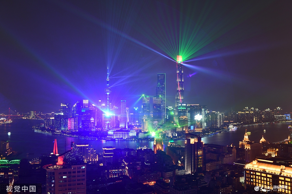 2019年11月4日晚,上海黃浦江兩岸燈光璀璨,陸家嘴、北外灘、外灘建筑群光影秀變幻閃爍、絢麗繽紛,北外灘沿江碼頭被藍色的光源點綴得宛如流動的江水,與周邊的建筑景觀交相輝映,吸引不少市民游客觀賞拍攝。上海國際大都市以美侖美奐的夜色光影秀喜迎第二屆中國國際進口博覽會的開幕。