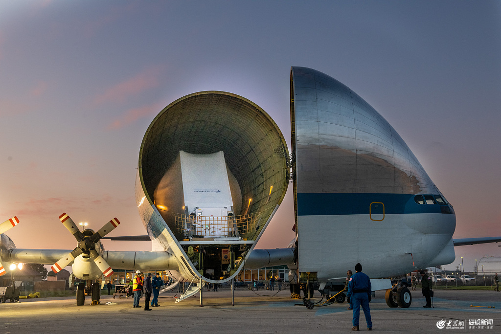 美國(guó)俄亥俄州里奇蘭縣,美國(guó)宇航局(NASA)最大的運(yùn)輸機(jī)“超級(jí)孔雀魚(yú)”搭載“獵戶座”宇宙飛船及設(shè)備,從佛羅里達(dá)州肯尼迪航天中心出發(fā),抵達(dá)俄亥俄州曼斯菲爾德拉姆機(jī)場(chǎng),為“阿爾特彌斯”登月計(jì)劃作準(zhǔn)備。