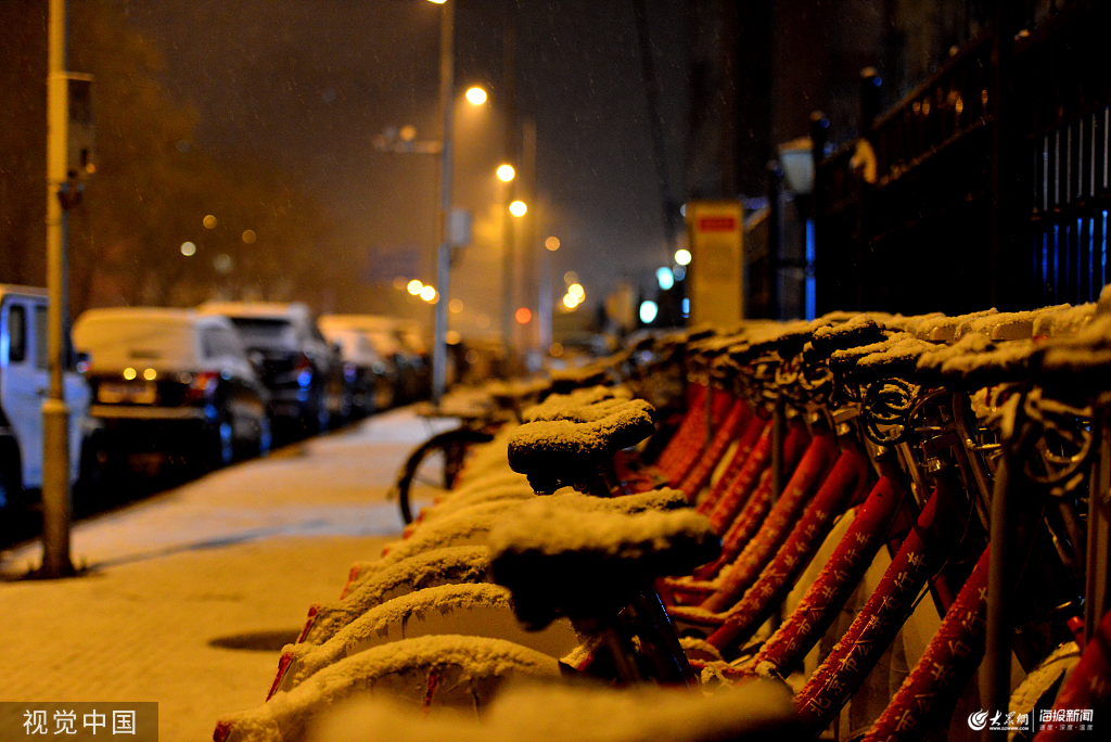 2019年11月29日晚,北京迎來入冬以來的首場降雪,城區飄起雪花,市民游客賞雪景