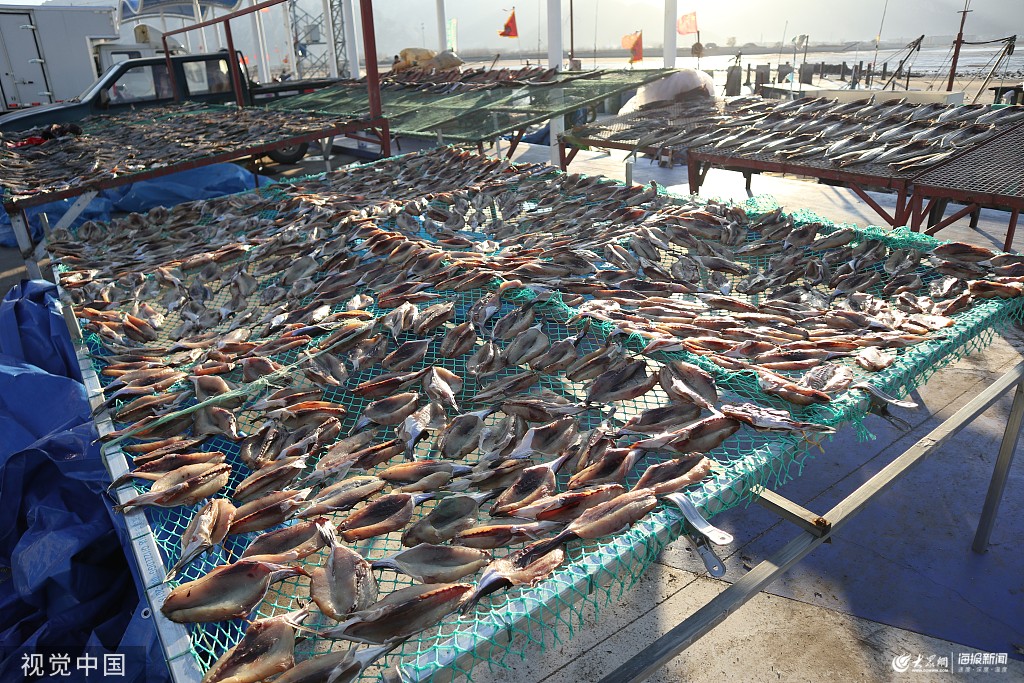 2019年12月2日,青島嶗山區(qū)港東漁碼頭晾曬的各種海魚(yú)。寒冬時(shí)節(jié)海風(fēng)勁吹,港東碼頭漁民將捕獲的面包魚(yú)、鲅魚(yú)、偏口魚(yú)等琳瑯滿(mǎn)目的海魚(yú)經(jīng)海水清洗去除內(nèi)臟集中晾曬,場(chǎng)面壯觀(guān)。曬魚(yú)是膠東漁民數(shù)百年的傳統(tǒng),不要佐料只需自然天曬便成美味,成為當(dāng)?shù)匾坏廓?dú)特的風(fēng)景,也為漁民帶來(lái)豐厚收入。