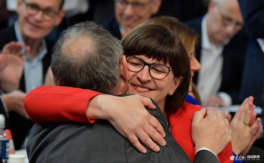 當地時間2019年12月6日,德國柏林,德國社會民主黨(社民黨)召開黨代會,正式選舉薩斯基婭·艾斯肯和諾貝特·瓦爾特-博爾揚斯為黨主席,確認了11月30日的選舉結果。