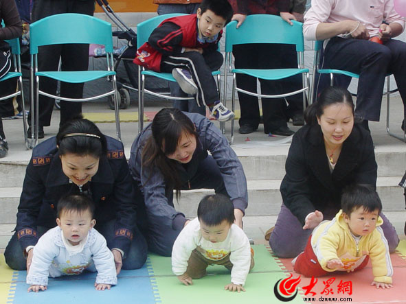 大眾網(wǎng)4月9日訊 近日,二七新村街道辦事處建南社區(qū)計(jì)生協(xié)在世紀(jì)家園北門舉行了一場別開生面的計(jì)生早教宣傳活動(dòng),通過舉行寶寶爬行大賽、發(fā)放宣傳材料,廣泛宣傳早期教育知識(shí)及新型生育文化。 寶寶爬行大賽吸引了社區(qū)內(nèi)80個(gè)家庭的小寶寶參加,其中年齡最小的才7個(gè)月。比賽中,寶寶們各展絕活“奮勇前進(jìn)”,逗得現(xiàn)場觀眾笑聲不斷。活動(dòng)現(xiàn)場,擺放著各類宣傳掛圖,社區(qū)工作人員向居民發(fā)放了宣傳資料500余份,內(nèi)容包括政策法規(guī)、早期教育、優(yōu)生優(yōu)育等方面。(王曄)