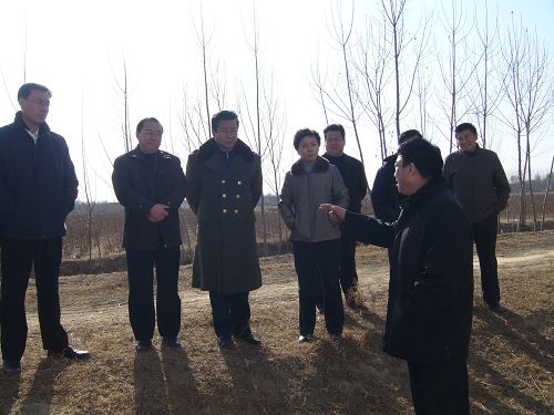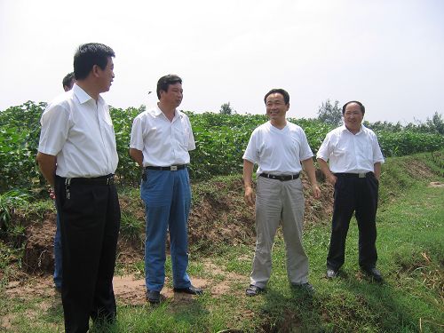 臨邑縣縣委副書(shū)記、縣長(zhǎng)劉長(zhǎng)民(左二)陪同省水利廳副廳長(zhǎng)馬承新(左一)、副廳長(zhǎng)曹金萍(左四)