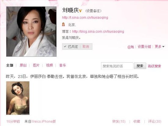 劉曉慶新浪微博:點(diǎn)擊進(jìn)入