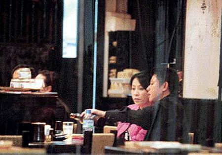 男伴不時為嘉玲斟酒,并不時分食物給她,照顧周到。